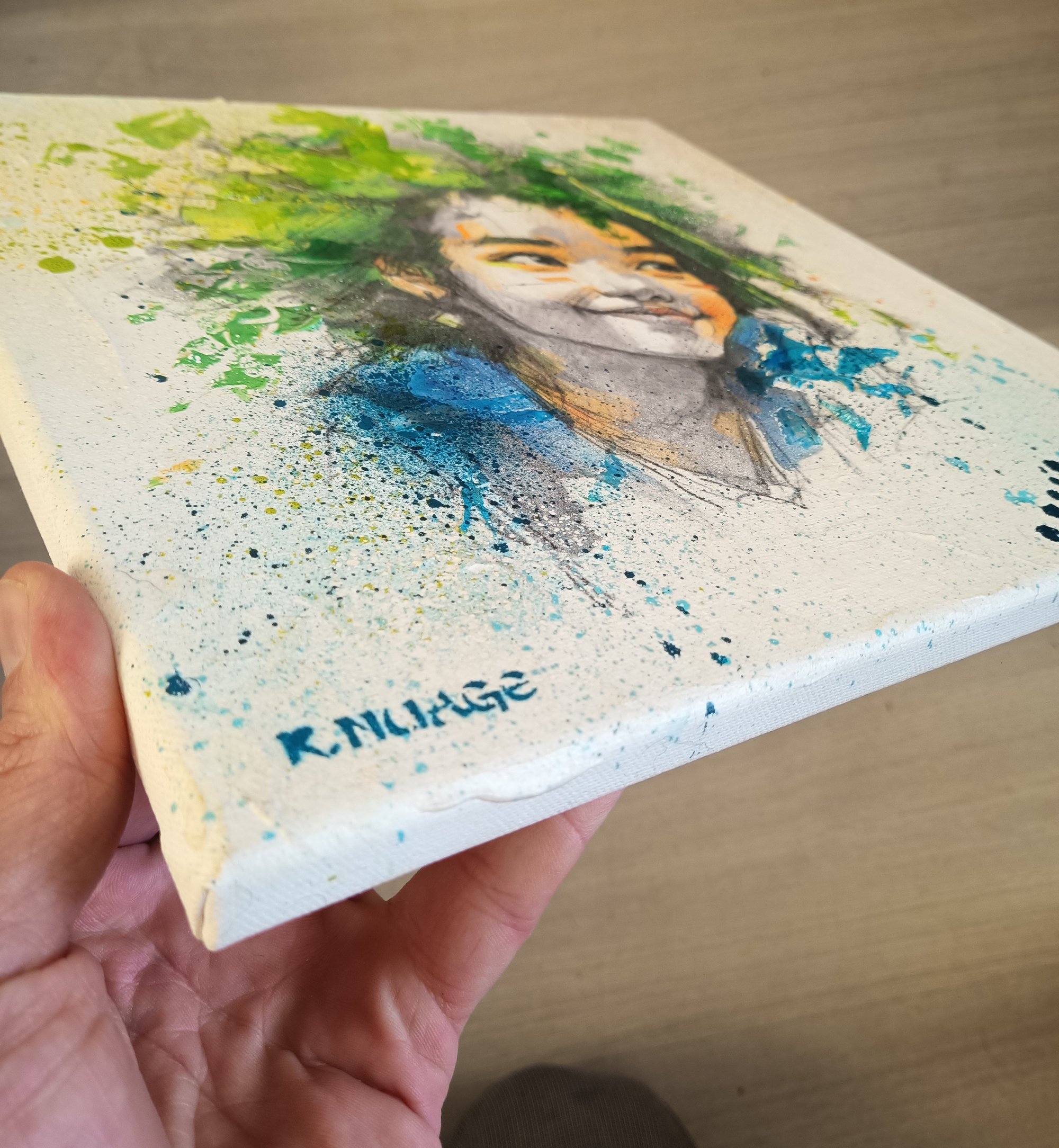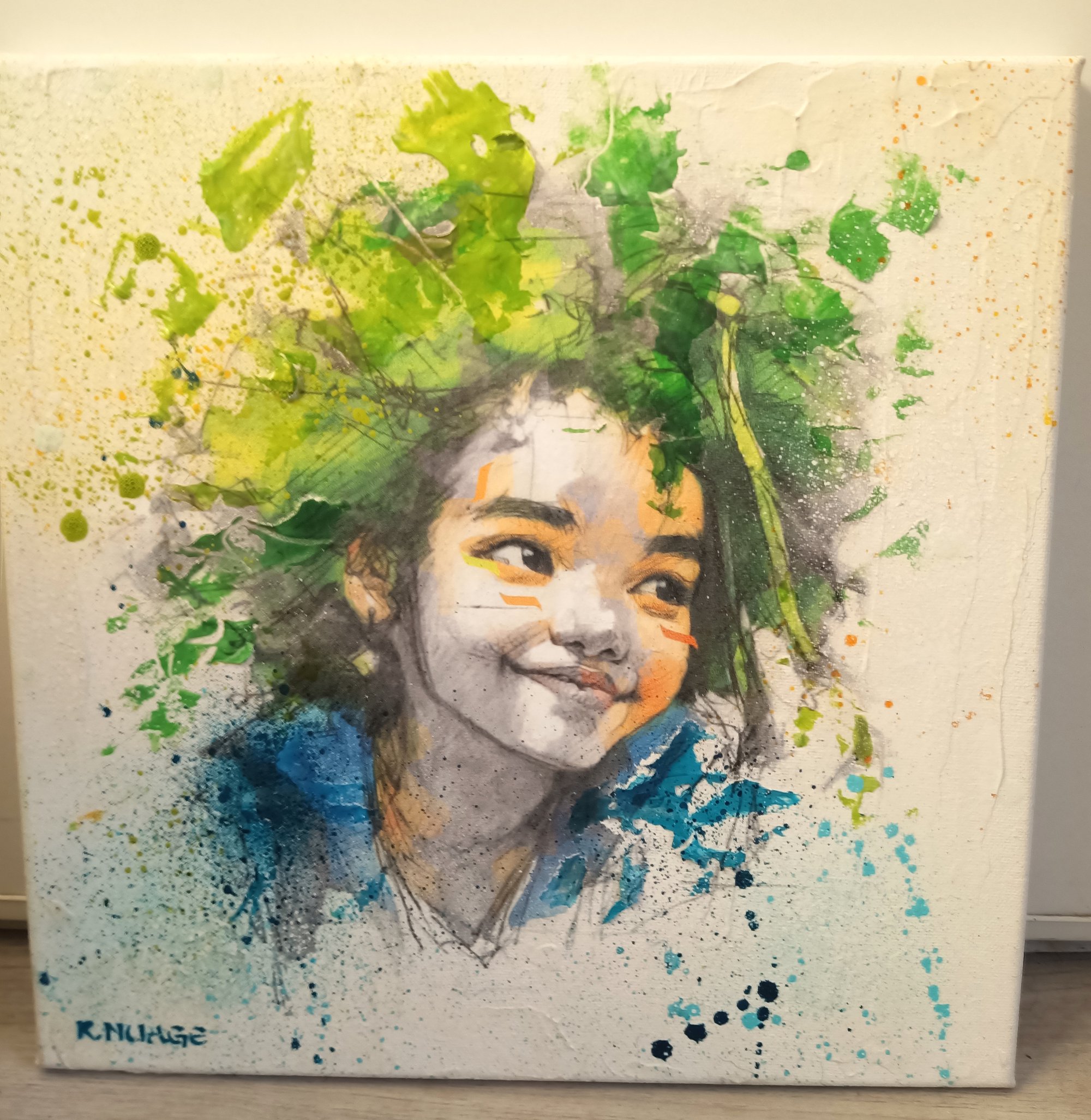Technique mixte sur toile 30x30 cm : print, aérosol, pochoir